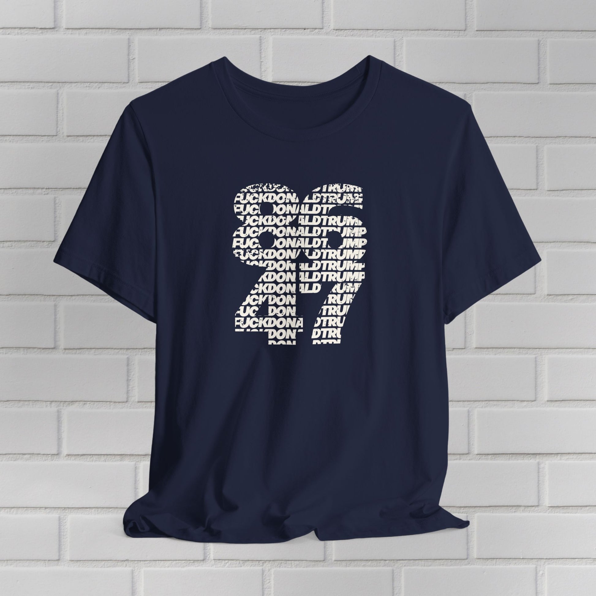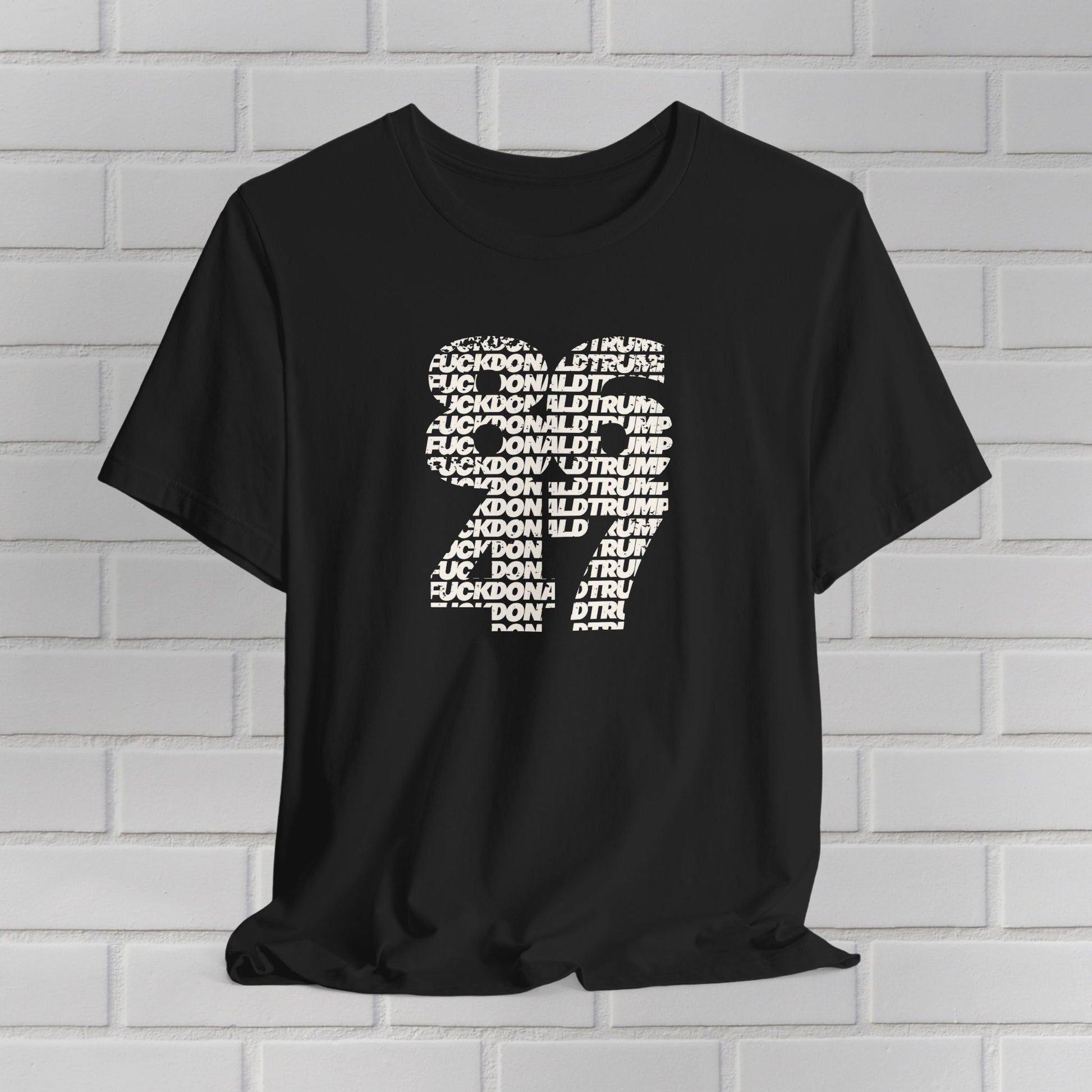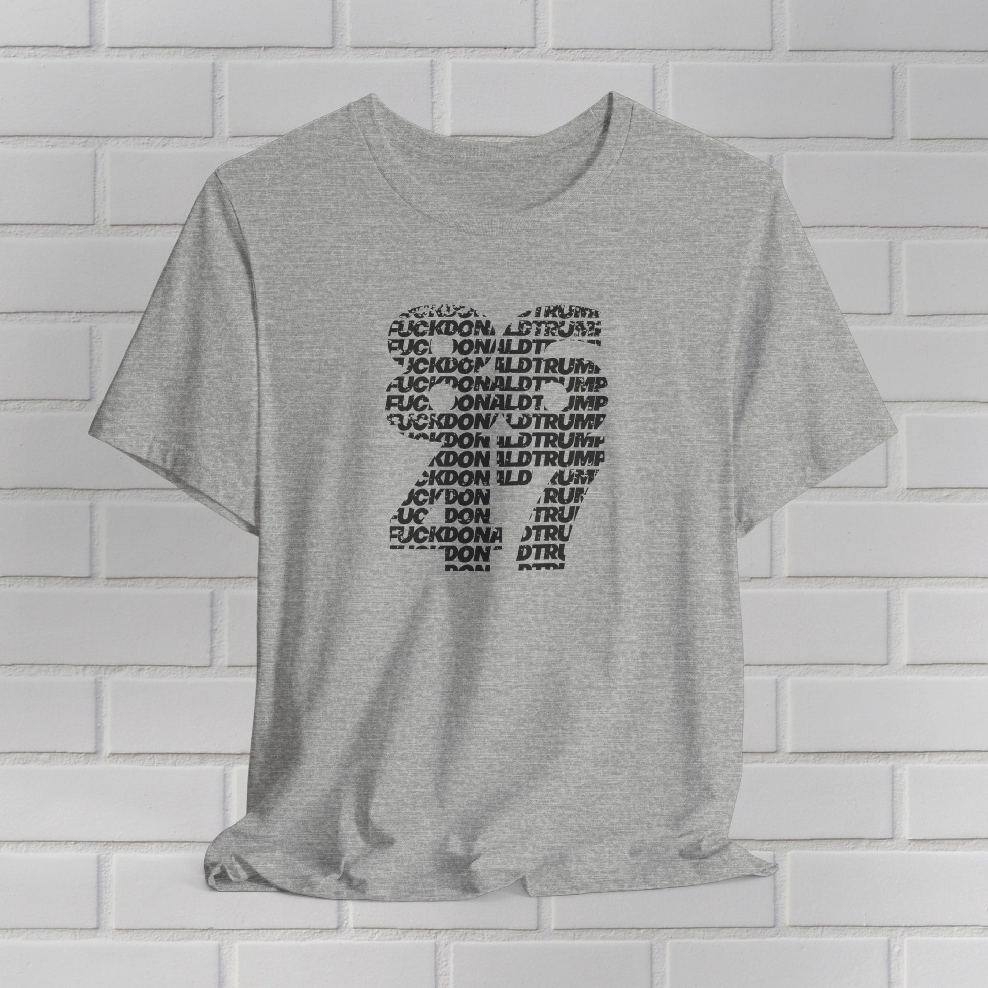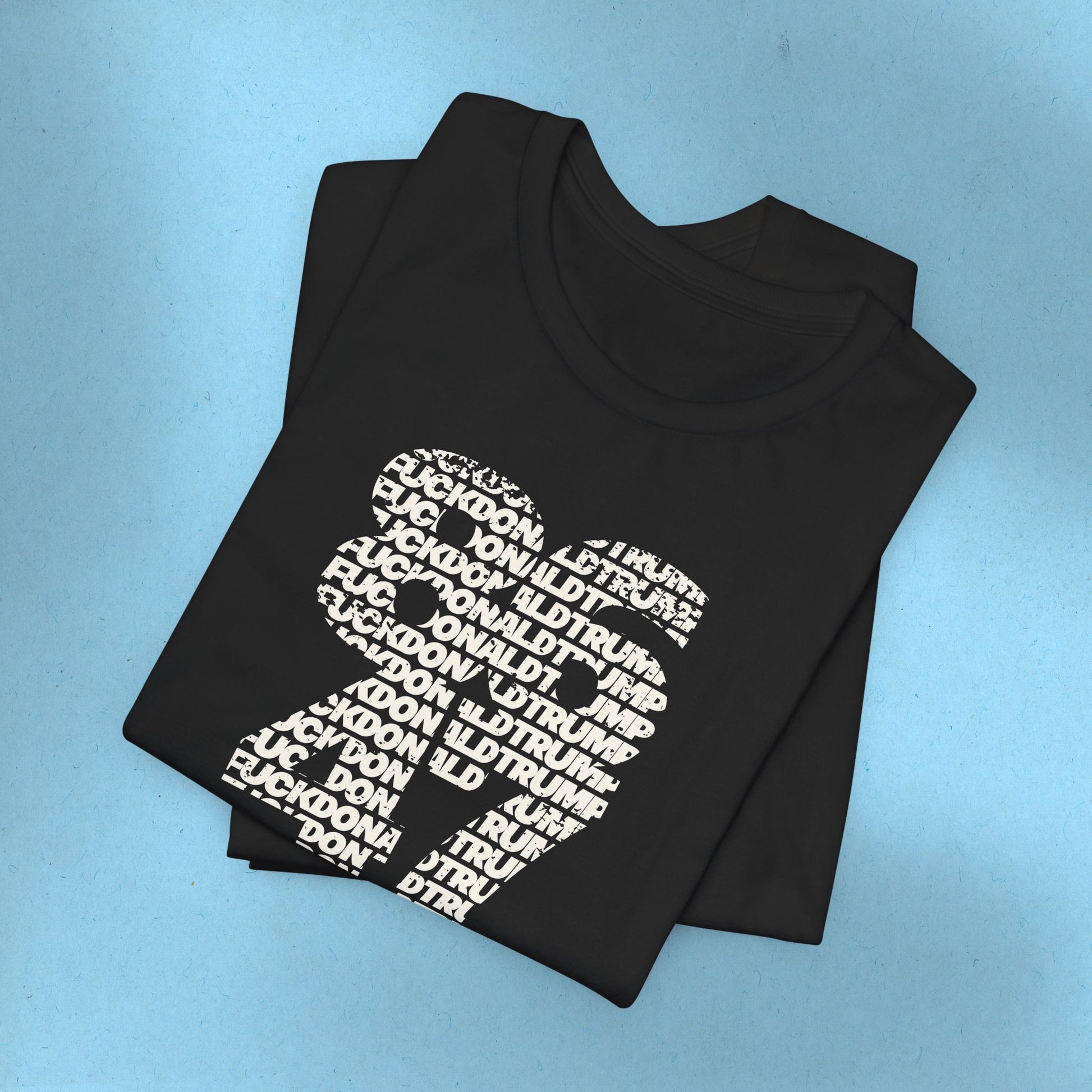 86 the fascism. 47 was never the answer. This bold typographic tee, with its numerical cutout of a repeated mantra, doesn't mince words or digits. Whether you're marching in protest, rallying for democracy, or just running errands in a red state, this ultra-soft jersey keeps you cool while your shirt does the shouting.